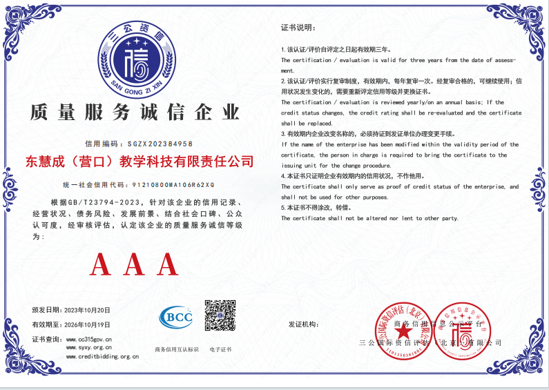 東慧成(營(yíng)口)教學(xué)科技有限責(zé)任公司